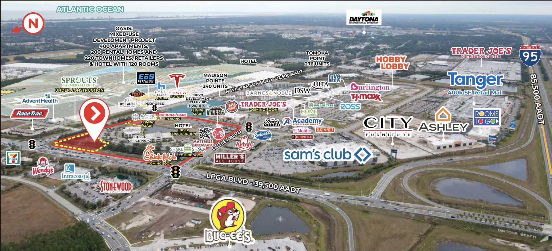 - Prime location just off Interstate 95, at the entrance to Tomoka Town Center (1.2m SF retail, 600 multi-family units) and Tanger Outlets.