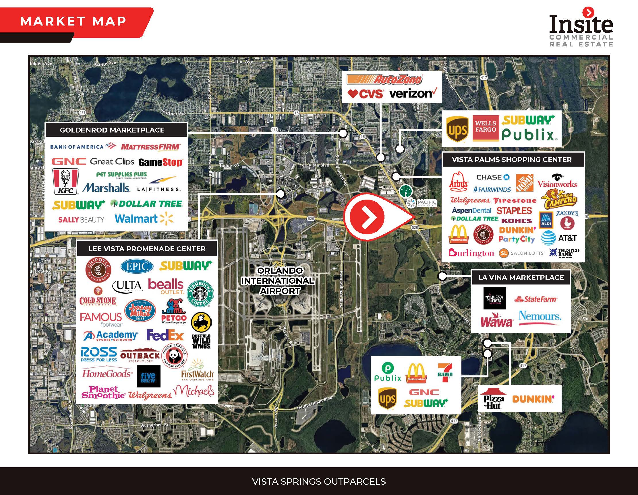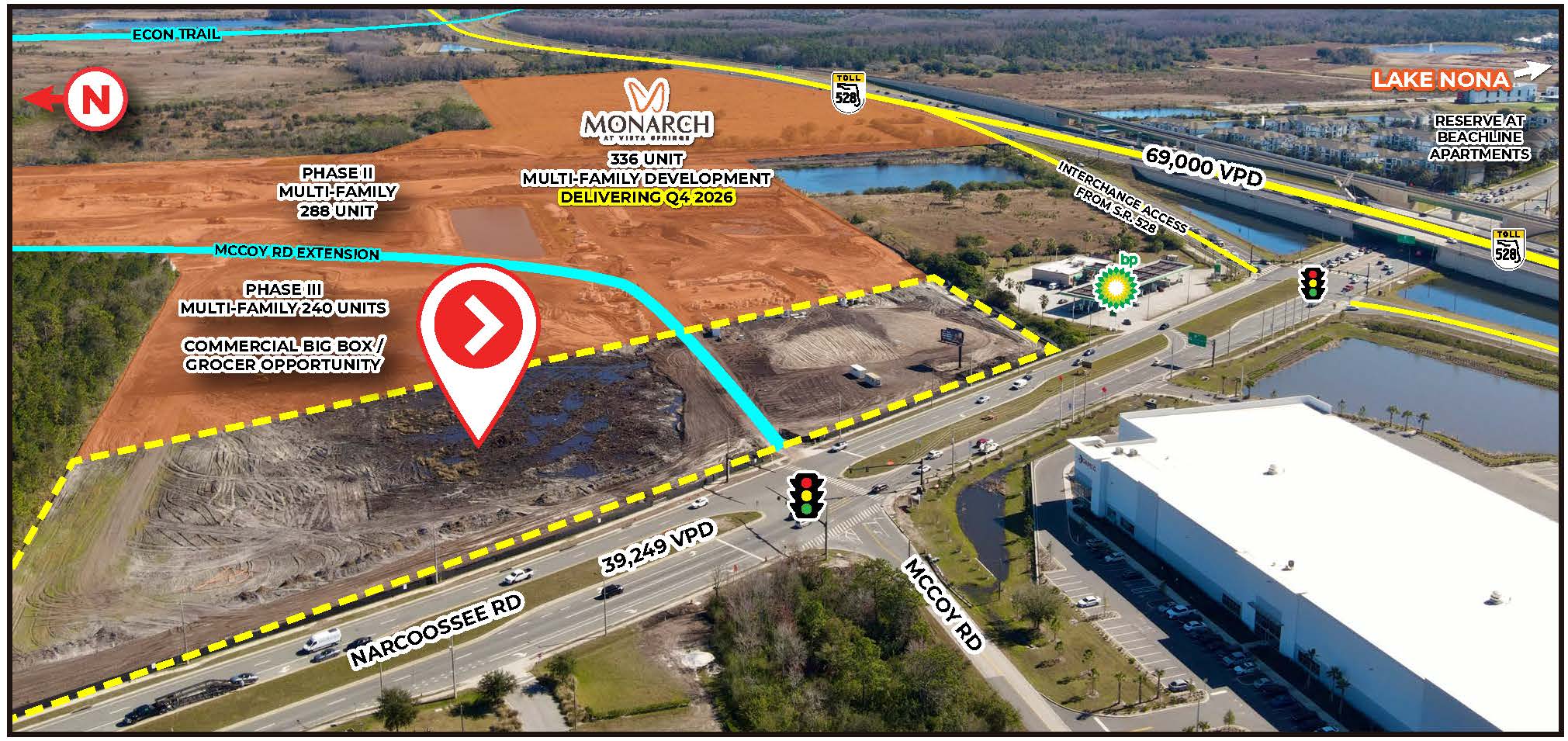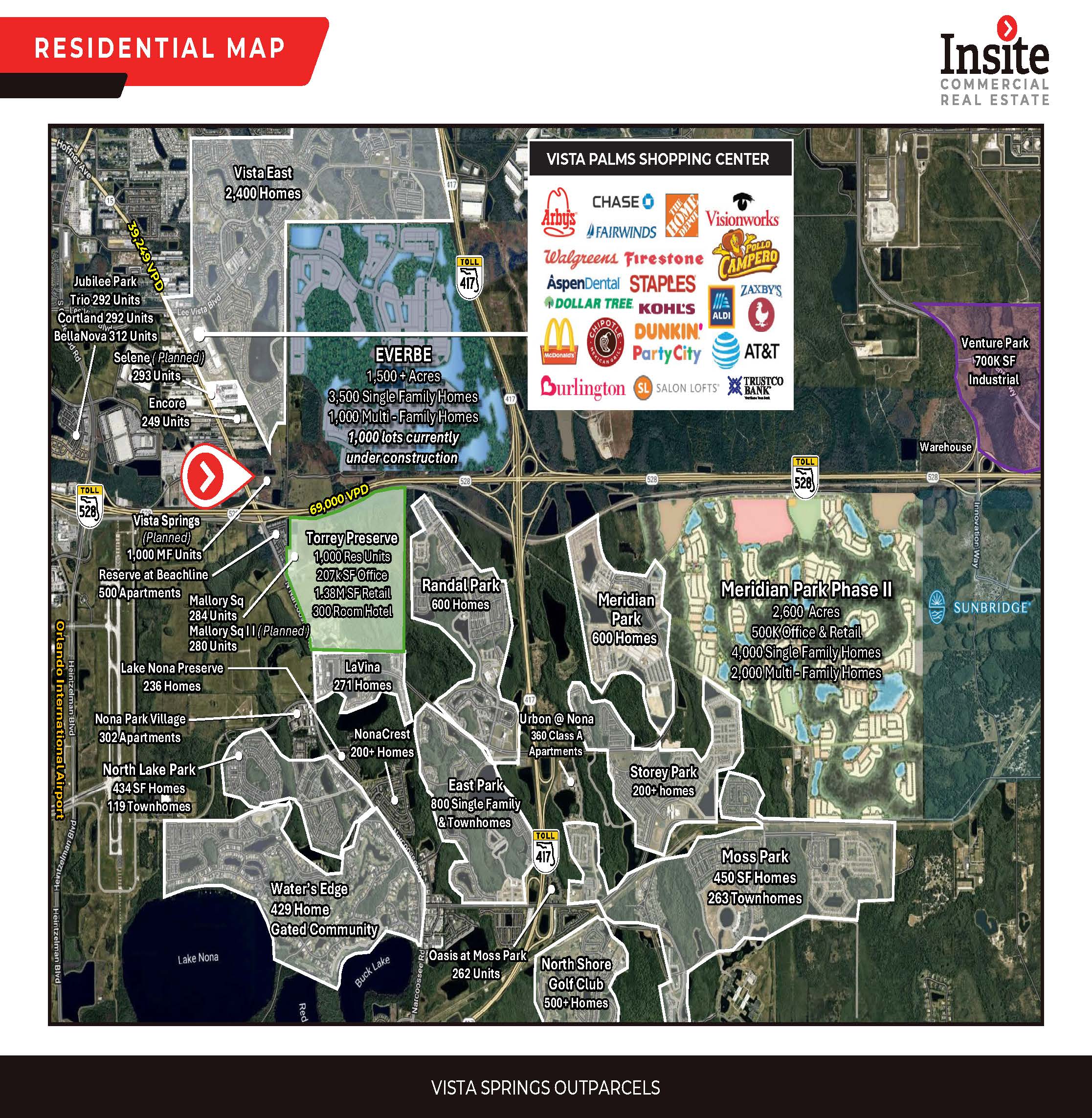 The Vista Springs outparcels will offer connectivity via McCoy Road to Pulte’s Everbe development, with additional access North to Lee Vista Boulevard through Econ Trail.